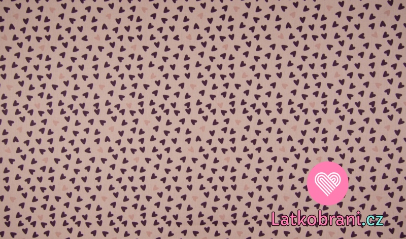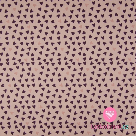 Bavlněný popelín potisk tmavší a světlejší srdíčka na zaprášené růžové