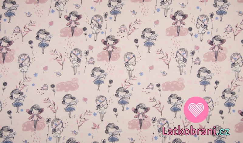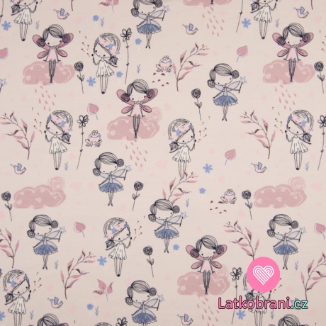 Úplet potisk tančící víly v dešti na pastelové růžové