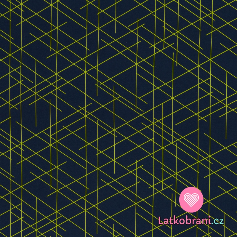Teplákovina potisk nepravidelné zelené čáry na tmavě modré