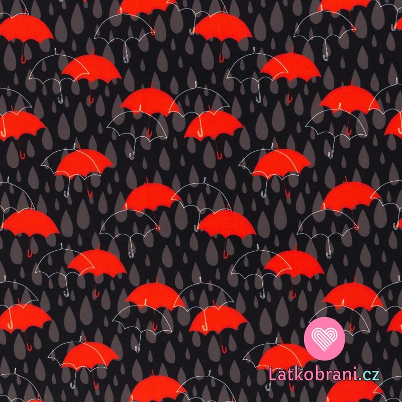 Softshell potisk červené deštníky mezi kapkami na černé s fleecem