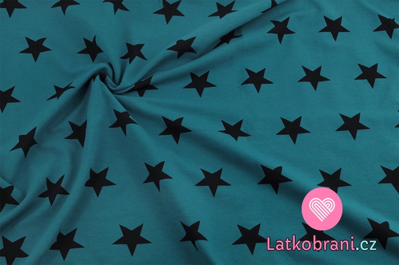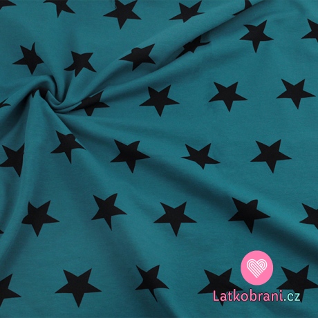 Teplákovina potisk černé hvězdičky na modré
