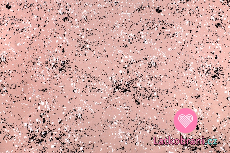 Teplákovina potisk bílé a černé kaňky na růžové