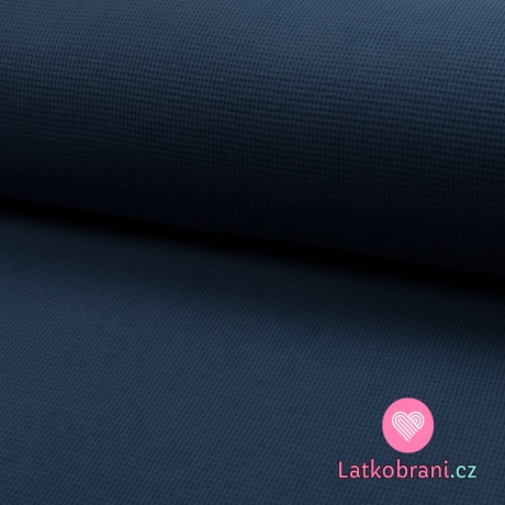 Bavlněný vaflový úplet jednobarevný modrý denim