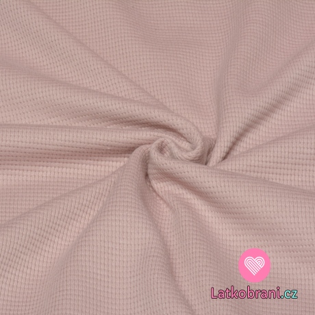 Bavlněný vaflový úplet jednobarevný zaprášený růžový
